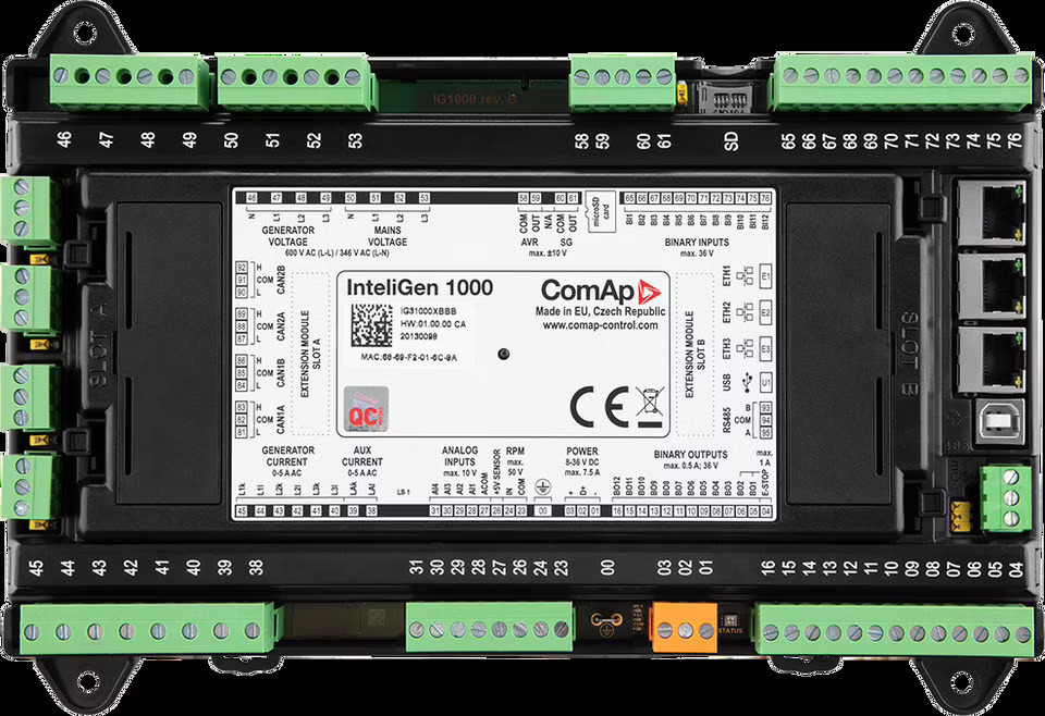 مناسب برای کارخانهها، مراکز داده (Data Center) و شبکههای برق هوشمند. با ارائه گزارشهای لحظهای، هشدارهای نگهداری پیشگیرانه و قابلیت سوئیچ خودکار (failover)، InteliGen 1000 تضمین میکند که تأمین انرژی شما بدون وقفه و با حداکثر بازده انجام شود.