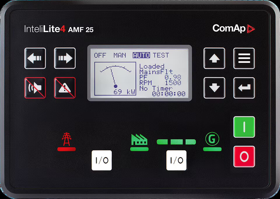 InteliLite 4 AMF 25 یک کنترلر همهکاره برای مدیریت ژنراتورهای دیزلی کوچک تا متوسط است. این دستگاه با قابلیت پایش و کنترل بلادرنگ، امکان جابهجایی خودکار بین برق شبکه و ژنراتور را فراهم میکند و از عملکرد پایدار سیستم اطمینان حاصل مینماید.